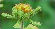 ![]() ■花に多くの目立つ腺毛があり、粘液を出し、人や動物に付着して果実を散布する。 |